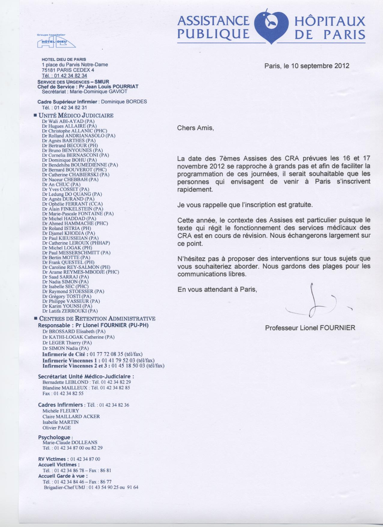 Vous trouverez en pièce jointe un courrier du Professeur FOURNIER à propos
