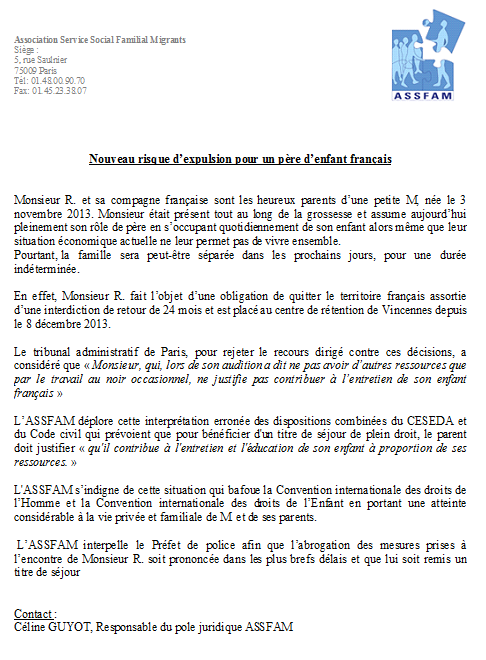 Nouveau risque d'expulsion pour un père d'enfant français - Communiqué ASSFAM